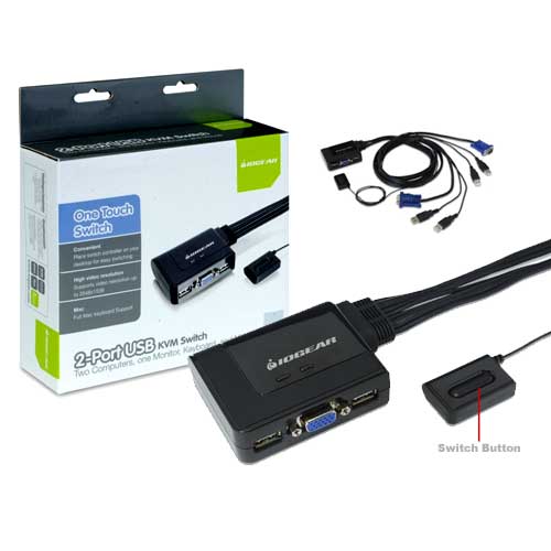 IOGEAR 2-Port USB KVM Switch with Cables and Remote GCS22U