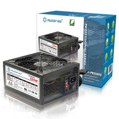 PrudentWay PR550 550W V2 Full-Watt, 14cm Fan with Smart Fan Control, +12V Rails/ SATA, RoHS, Low Noise, High efficient, Cable Management with UL approved